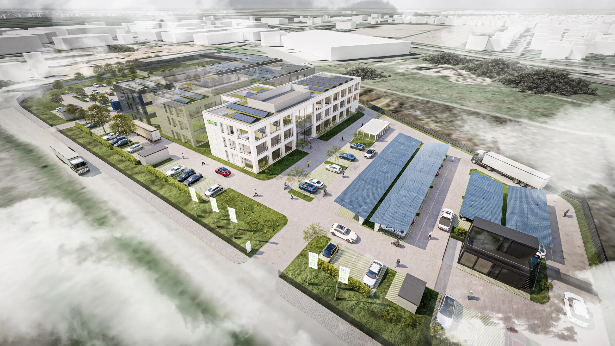 Der Campus ist konsequent auf Energieeffizienz und Nachhaltigkeit ausgelegt. Großflächige Photovoltaikanlagen – darunter Dachinstallationen, Solarcarports und sogar ein innovativer PV-Zaun – erzeugen einen Großteil der benötigten Energie direkt vor Ort. In Kombination mit einem modernen Batteriespeichersystem entsteht so eine möglichst autarke und zugleich netzdienliche Stromversorgung, die Lastspitzen abfedern und überschüssige Energie intelligent ins Netz einspeisen kann. Darüber hinaus wird die spätere Integration von Wasserstofftechnologien vorbereitet, beispielsweise durch die Sammlung von Regenwasser, das künftig sowohl zur Bewässerung der Grünanlagen als auch in Elektrolyseanlagen genutzt werden kann.